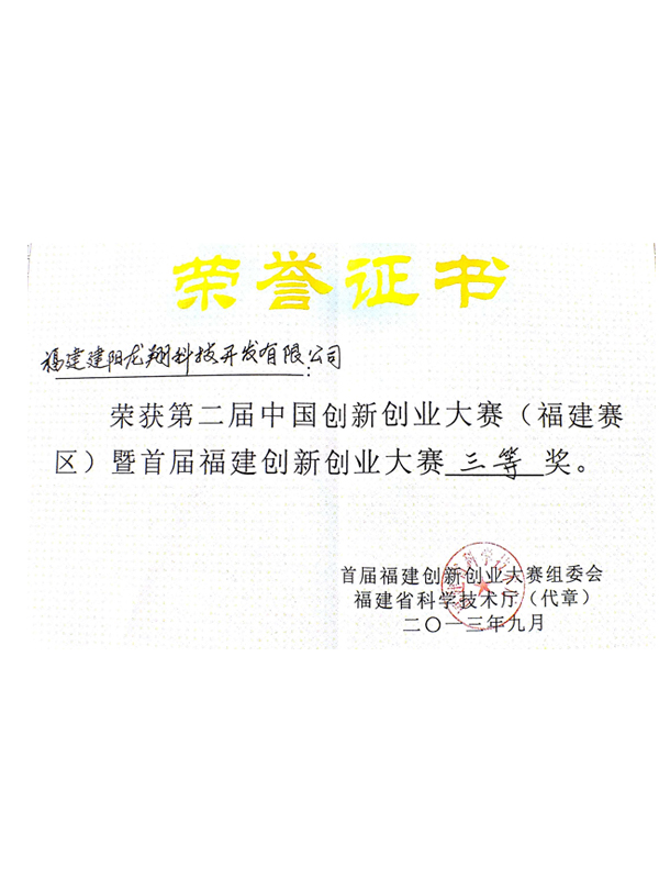 第二屆中國(guó)創(chuàng)新創(chuàng)業(yè)大賽(福建賽區(qū))暨首屆福建創(chuàng)新創(chuàng)業(yè)大賽三等獎(jiǎng)