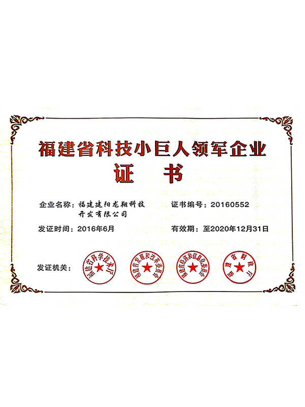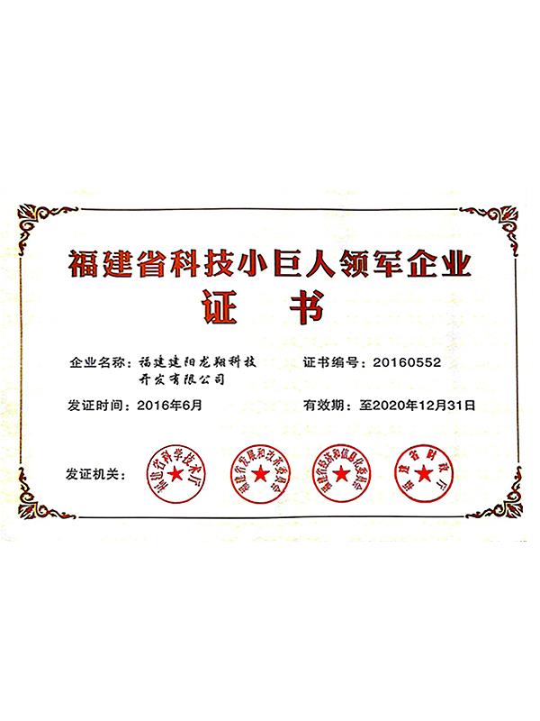 福建省科技小巨人領(lǐng)軍企業(yè)證書(shū)