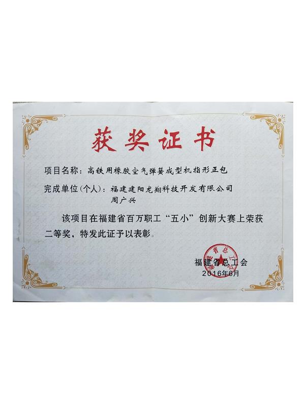 福建省百萬(wàn)職工“五小”創(chuàng)新大賽二等獎(jiǎng)-高鐵用橡膠空氣彈簧成型機(jī)指形正包